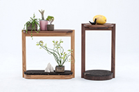 グレーのキャンパスにペイントしたような独特のテクスチャ。これは、八女市で採れる阿蘇火山帯の凝灰岩”長野石”が持つ自然の表情です。古くから日本庭園に佇む石灯籠として親しまれてきた天然素材。プレーンな岩肌のなかに、天体を思わせる美しいリズムが宿っています。